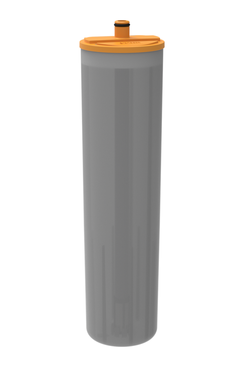 Wir von Grünbeck denken für Sie mit. Deshalb ist die Füllpatrone thermaliQ:HC2 direkt im Lieferumfang der Aufbereitungsgruppe thermaliQ:HC2 sowie der Füllstrecke thermaliQ:FC2 enthalten. Vor der Inbetriebnahme wird sie einfach in die Kartusche eingesetzt und per Bajonettanschluss sicher fixiert. Auch der Wechsel der Füllpatrone ist dank der integrierten Absperrung in Sekundenschnelle leckagefrei erledigt.