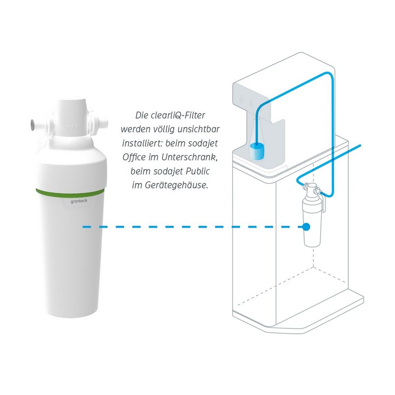 Einbaubeispiel des Wasserfilters clearliQ im Unterschrank des sodajet Office.