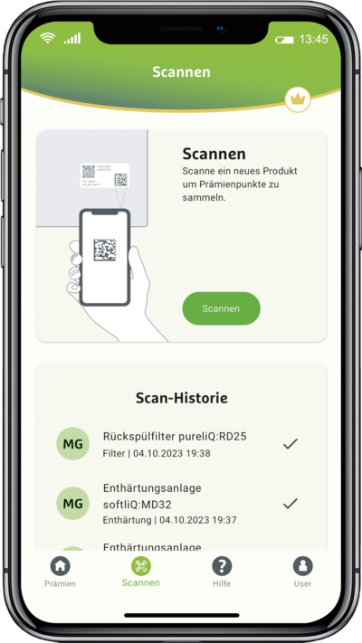Für jedes gekaufte Grünbeck-Produkt erhalten Sie wertvolle Punkte, die Sie in einen hochwertigen pureliQ-Filter umwandeln können. Sie können wählen zwischen demKerzenfilter mit Druckminderer pureliQ:KDX oder dem Rückspülfilter mit Druckminderer pureliQ:RDX. Sogar die Enthärtungsanlage softliQ:SE können Sie als Prämie bekommen. Wie Sie das machen? Ganz einfach: Scannen Sie mit der eigens für Wassermeister entwickelten Wassermeister-App (für iOS und Android) den QR-Code auf der Verpackung von einem der über 100 scanbaren Grünbeck-Produkte.