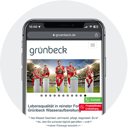 Als Grünbeck-Wassermeister werden Sie auf unserer Internetseite gruenbeck.de für alle Besucher als exklusiver Handwerksbetrieb aufgeführt. Der Besucher findet Sie als regionalen Ansprechpartner und hat somit die Möglichkeit, direkt und unkompliziert Kontakt aufzunehmen. Gleichzeitig erhalten Sie bei Erfüllung bestimmter Rahmenbedingen Anfragen von Endkunden, die wir über unseren Produktfinder sowie die Produktseiten generieren. Das bedeutet, dass Sie quasi nebenbei Grünbeck-Produkte und Ihre Dienstleistung verkaufen können.