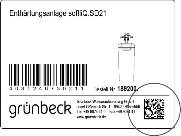 1. Auf unseren Grünbeck-Produkten befindet sich ein großer Produktaufkleber, auf dem du unten rechts einen QR-Code findest.